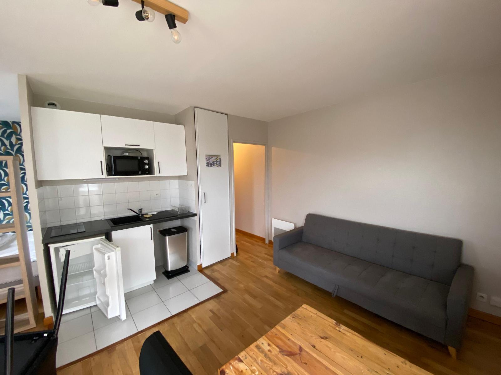 A LOUER ANGERS PASTEUR - Appartement de type 1 au 1er étage porte au fond du couloir comprenant une entrée avec placard, séjour avec coin cuisine, un espace nuit, salle d'eau avec WC, balcon. Parking extérieur. Chauffage et eau chaude individuel électrique. DISPONIBLE. AGENCE DE L'ANJOU 02.41.87.52.52. Le bien est soumis au statut de la copropriété. Loyer de 590,00 euros par mois charges comprises dont 60,00 euros par mois de provision pour charges (soumis à la régularisation annuelle). Les honoraires charge locataire sont de 338,55 euros ( soit 11,10 euros/m² ) dont 92,42 euros pour état des lieux ( soit 3,03 euros/m² ). Montant estimé des dépenses annuelles d'énergie pour un usage standard : entre 520 et 770 euros. Prix moyens des énergies indexés en 2021.